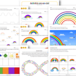 10 activités sous la thématique arc-en-ciel. Dessin, pré-écriture, Reconnaissance visuelle, jeu de mémoire, découpage, apprentissage des couleurs, cherche et trouve, apprentissage des grandeurs, activité coordination œil-main et relaxation sont au menu.