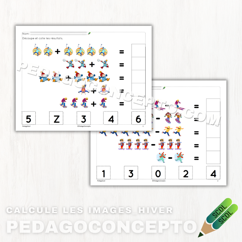 L’élève compte combien il y a d’images et additionne ou soustrait.