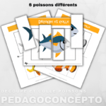 6 images de poissons à assembler et jumeler (sorte de casse-tête).