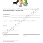 Document à faire signer aux parents ou titulaire, pour signaler la présence d’animaux dans le service de garde éducatif de l’enfant.