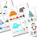 Activité en petite enfance sous la thématique de l’hiver. L’enfant doit repérer la même image au bas de la planche que celle représentée en gros. Il y appose une épingle à linge. Utile en jeu libre, activité de transition.Incluant 12 planches de jeu.
