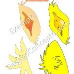 4 modèles de bas de visages de lapins et 2 de poussins ainsi que 4 paires d’oreilles de lapin et 2 hauts de têtes de poussins.