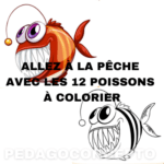 Ensemble de 12 poissons à colorier accompagné d’une proposition de jeu.