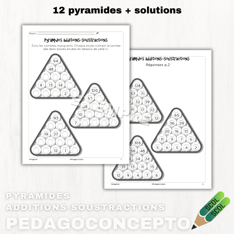 12 pyramides mathématiques à compléter.