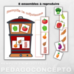 L’enfant doit mettre les ingrédients dans le bon compartiment de la mijoteuse.