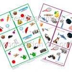 Utilisez les cartes de même couleur et en distribuer une à chaque enfant. Les enfants se promènent d’un ami à l’autre et entre eux, le but est de trouver la seule et unique image identique entre les 2 cartes! Une fois trouvé, les enfants la nomment et vont rencontrer un autre ami. S’il y a plus de 6 enfants dans le groupe, divisez le groupe en 2 en donnant une série de cartes vertes à un groupe et une série de cartes violets à l’autre.